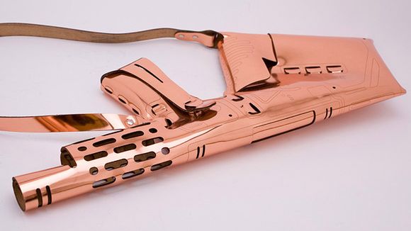 Każdy fan wojska podejrzewam, nie odmówiłby dołączenia dziewczynie do ekipy, która posiadałaby torebkę w kształcie karabinu maszynowego. Gry i zabawy można by przenieść na inna płaszczyznę. Zamiast udawanych pistoletów z patyków i granatów z mokrego piasku dziewczyny biegałyby z torebkami, a chłopcy z plastikowymi wyrzutniami rakiet. Fakt faktem, że ta zaprojektowana przez Jamesa kosztuje ponad $570, a lśniąca skóra, z której wykonano torbę szybko mogłaby obrócić się w ruinę.