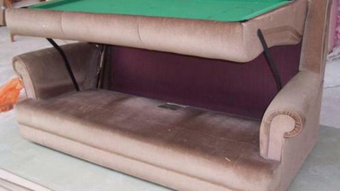 Zawsze marzyłem o własnym stole bilardowym, niestety brak wolnego miejsca (i funduszy!) uniemożliwia mi spełnienie marzenia. Gdybym jednak miał taką sofę, jak na powyższym obrazku.