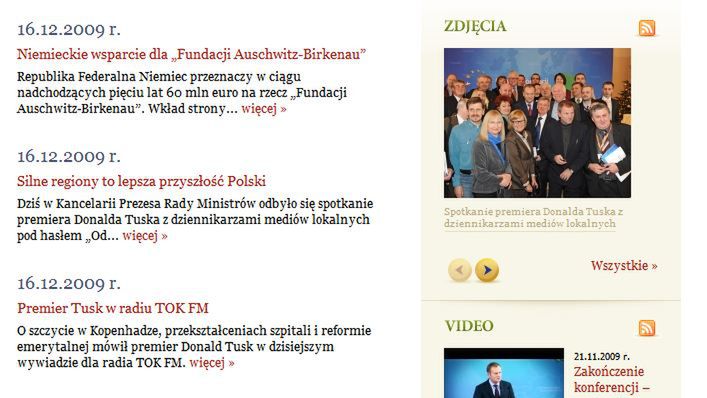 Strona premiera kopiuje niektóre rozwiązania zastosowane przez urzędników prezydenta kilka miesięcy temu. Ma formę bloga, jest sporo wiadomości, a także galeria.