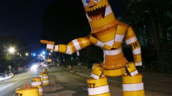 Z jednej strony wandalizm powinien być zwalczany, z drugiej jednak dzieła Josepha urozmaicają szarą drogową rzeczywistość. Może czas pomyśleć o legalizacji tego typu działalności? Wielki pomarańczowy potwór mógłby skutecznie przekonać wielu kierowców do zwolnienia.