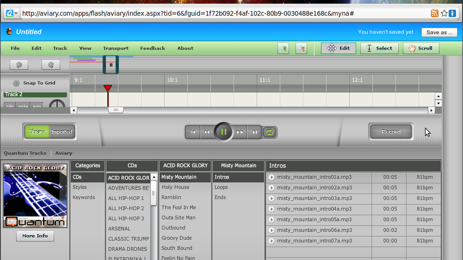 Całość wymaga do poprawnej pracy wgranego dodatku Adobe Flash (zapewne już posiadasz do w systemie), więc jak na erę Web 2.0 przypadło nie musimy już instalować żadnych dodatkowych aplikacji, by móc skorzystać z narzędzia. Po uruchomieniu dostajemy standardowo zbiór różnego rodzaju sampli muzycznych z szerokiego grona gatunków. Wszystkie są podzielone na wstępy, zakończenia czy pętle, zatem prosto można dobrać odpowiedni fragment do danej części naszego utworu.