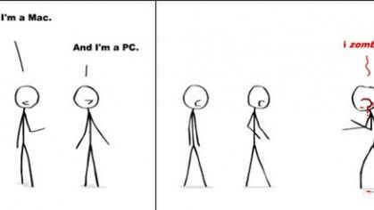 Powyższy komiks nie odzwierciedla moich poglądów. Prawdę mówiąc duża część naszej redakcji korzysta z Maców, a najprawdopodobniej nie przetrwałaby najazdu zombie.
