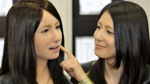 Robot którego zaraz zobaczycie w poniższym materiale filmowy otrzymał nazwę Geminoid F, jego główną zaletą jest to, że wygląda niemal identycznie jak jego konstruktorka Satoko Inou. Czarne długie włosy, silikonowa skóra, nawet porcelanowe zęby mają dawać złudne wrażenie obcowania z czymś naprawdę żywym. Co ciekawe, Geminoid F potrafi się uśmiechać i naśladować mimikę twarzy prawdziwej kobiety.