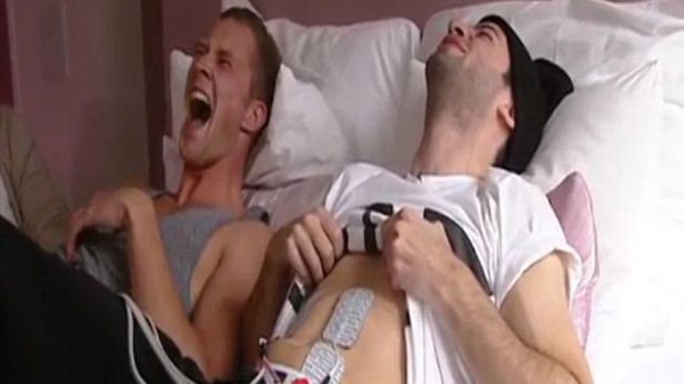 - Mężczyźni i ból porodowy. Holendrzy przeprowadzili ciekawy eksperyment: dwóch facetów podpięto do elekronicznych symulatorów, które miały im uzmysłowić, jak cierpią kobiety przy porodzie. Akcja zaczyna się ok. 3. minuty, wycie i zwijanie się z bólu ok. 6. minuty.