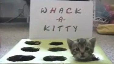 No dobrze, a teraz odłóżcie młotki, przestańcie szukać kota dziewczyny i czytajcie dalej. Pamiętacie grę walnij kreta? Polegała na uderzaniu młotkiem wysuwających się głów kretów, świstaków albo innych drobnych zwierzaków. Autor nagrania sprawił sobie wersję live tego gadżetu. Tylko zamiast kretów użył kociaków.
