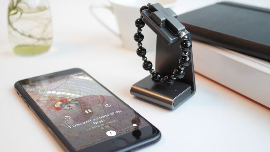 Aplikacja współpracująca z różańcem pokazuje progres użytkownika w odbytych modlitwach.