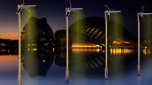 Makro, ponieważ wiatrako - solary, które widzicie powyżej, miałyby być jednocześnie latarniami ulicznymi. Kierunkowe lampy LED oświetlałyby ulice i chodniki.