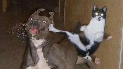 Internet kocha koty. Psy przeważnie ich nie lubią. Zobaczcie wideo z odważnymi miauczącymi futrzakami, które walczą o terytorium.