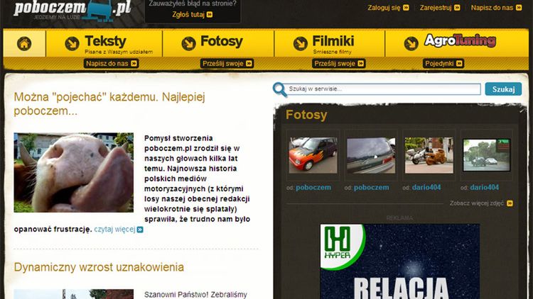 Pomysłodawcy projektu mocno liczą na zaangażowanie czytelników w tworzeniu nowych treści - na Poboczem.pl nie sposób nie zauważyć linków zachęcających do pisania tekstów czy przesyłania zrobionych zdjęć. Fajnym działem jest Agrotuning, gdzie internauci głosują na najbardziej odjechane (wiejskie) fury.