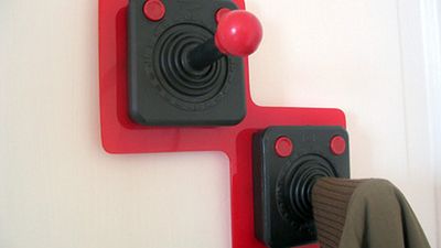 Sprytne dżojstiki wieszaki zaprojektował Włoch Felipe Morales. Chociaż w sumie nie wiem co tu było do projektowania? Wystarczy znaleźć na aukcji internetowej stary kontroler, kupić uniwersalny klej i zaatakować nim ścianę.