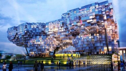 Tego budynku jeszcze nie ma i zapewne nigdy nie powstanie, ale wygląda rewelacyjnie. To jeden z finałowych projektów pawilonu na World Expo 2010. Stworzony przez singapurskich architektów z Design Act projekt "My Dream, Our Vision", ma składać się z 3866 sześcianów o różnym stopniu przezroczystości. Dzięki temu naturalne światło tworzy wewnątrz niesamowite wizje.
