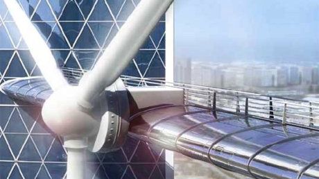Na wysokość ponad 240 m. wznoszą się dwie bliźniacze pięćdziesięciopiętrowe wieże w kształcie żagli. To World Trade Center w mieście Manama w Bahrajnie. Wieże połączone są trzema ogromnymi wiatrakami - turbinami wiatrowymi. Każdy z wiatraków ma średnicę prawie 30 metrów! I wygląda jak śmigło olbrzymiego samolotu.