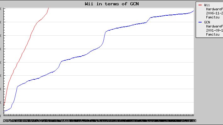 Przez rok od swojej premiery, najnowsza konsola Nintendo - Wii - wyprzedziła już poprzednią, która na tamtejszym rynku dostępna jest już ponad sześć lat. Chodzi oczywiście o GameCube'a, który od 14 września 2001 roku sprzedał się w Kraju Kwitnącej Wiśni w ilości niecałych czterech milionów egzemplarzy. Wii, które dostępne jest tam od 2 grudnia 2006 roku znalazło już ponad cztery miliony nabywców. Jeśli ktoś ma jeszcze jakiekolwiek wątpliwości, że "wielkie N" odbiło się od konsolowego dna, powinien rzucić okiem na poniższy obrazek.