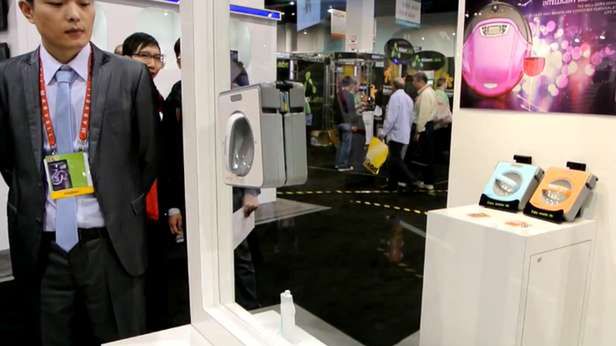 Prototypowe rozwiązanie tego typu zostało pokazane jeszcze w poprzednim roku, jednak docelowa wersja urządzenia zadebiutowała dopiero podczas targów CES 2012. Firma Ecovacs, produkująca m.in. automatyczne odkurzacze, przedstawiła wersję tego sprzętu działającą w pionie – Winbota.