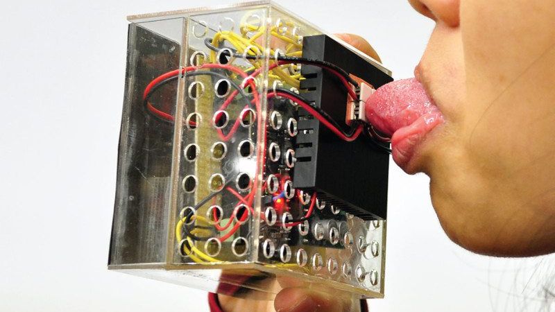 Skonstruowane przez dwójkę badaczy urządzenie zostało wyposażone w płytkę z elementów termoelektrycznych, gwałtownie zmieniających temperaturę i wywołujących wrażenia mylnie interpretowane neuronalnie. Skuteczność działania osiągnęła ok. 50 %, przy czym część uczestników próby deklarowała odczuwanie także smaku pikantnego (≥35°C) lub miętowego (≤18°C).