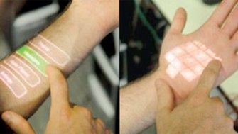 Wystarczy założyć specjalną opaskę wyposażoną w miniaturowy projektor rzucający obraz interfejsu na naszą rękę oraz czujniki pozwalające wykryć, które elementy wyświetlanego obrazu dotykamy. W jaki sposób to działa? Dzięki dźwiękom palca uderzającego o rękę.