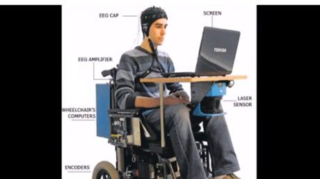 Komputer połączony z wózkiem przeprowadza na żywo trójwymiarową symulację otoczenia. Jednocześnie dzięki czujnikom umieszczonym w „czepku” wybory użytkownika w postaci fal EEG decydują o zachowaniu wózka.