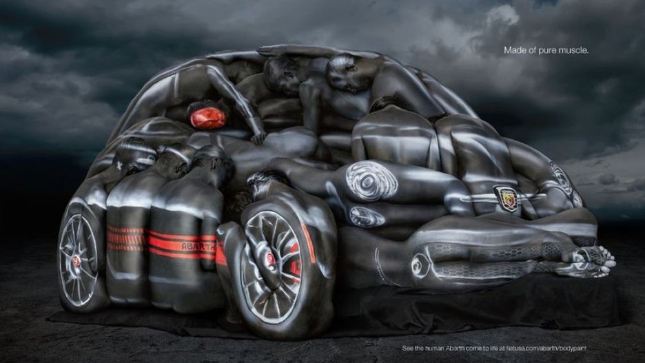 Fiat 500 Abarth Cabrio jest reklamowany w nietypowy sposób: za pomocą auta "zrobionego" z 12 nagich, odpowiednio pomalowanych kobiet. Zobaczcie wideo pokazujące kulisy reklamy.