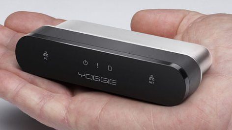 Firma Yoggie Security Systems, sama o cudnej nazwie, ma w swojej ofercie równie cudnie nazwane urządzenie - Yoggie Gatekeeper. Służy do zabezpieczania przenośnych komputerów w czasie podłączania się do sieci w miejscach publicznych. Tak na prawdę to osobny komputer, mieszczący się w dłoni, pracujący pod kontrolą Linuxa.