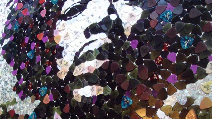 Autorem niezwykłego portretu Hendrixa jest Ed Chapman. Artysta nie użył pędzla i płótna - postarał się nieco bardziej. Do wykonania portretu wykorzystał aż 5 tysięcy różnokolorowych kostek gitarowych Fendera.