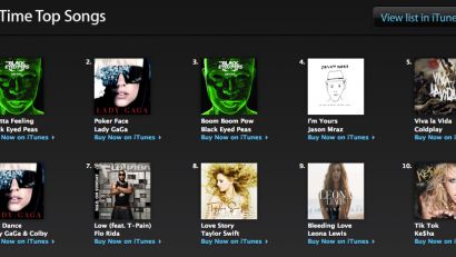 Obecnie w sklepie dostępnych jest ponad 10 milionów utworów, podczas gdy na początku ich baza liczyła zaledwie 200 tysięcy pozycji. Wśród artystów, którzy zdominowali zestawienie najpopularniejszych tytułów wszechczasów możemy znaleźć m.in. Black Eyed Peas, Lady Gagę czy Katy Perry.
