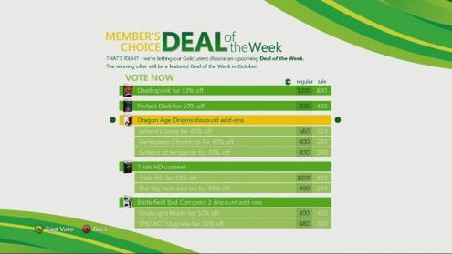 Jeśli korzystacie z Xboxa 360, to z pewnością chociaż raz musieliście dokonać jakiegoś zakupu na rynku usług online Microsoftu. Mamy dla Was małą ciekawostkę. Jest strona, na której użytkownicy XBL mogą głosować na zniżki oferowane za pośrednictwem "Deal of the Week".