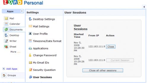 Zoho umożliwiło swoim użytkownikom zdalne zamykanie sesji. Aby tego dokonać konieczne jest wejście na stronę http://accounts.zoho.com i z „User Sessions” wybrać „Close all other sessions”.
