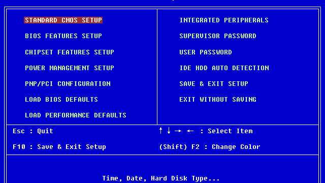 W zależności od tego jakiej firmy płytę główną posiadamy BIOS może wyglądać różnie. Aczkolwiek większość opcji w każdym komputerze jest taka sama. Również nazwy widocznych zakładek mogą się nieco różnić. Główne menu w BIOS firmy AWARD wygląda jak na niebieskim obrazku wyżej. Poruszanie w ustawieniach odbywa się za pomocą kursorów klawiatury, przycisków page up, page down, enter, esc.