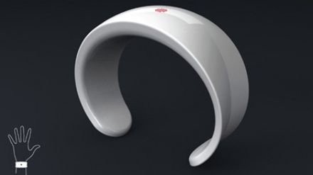 Ich koncepcja to ładna (podobno; zasięgnąłem opinii) zwykła jednokolorowa bransoletka z kropką na górze. Czego każdy przyglądający się temu kawałkowi biżuterii może nie wiedzieć, to fakt, że po dotknięciu intrygującego kształtu bransoletka wyświetli godzinę. Dotykowy ekran wyświetla tylko analogiczny zegar, nie ma żadnych innych funkcji, z których i tak zazwyczaj się nie korzysta w zegarku.