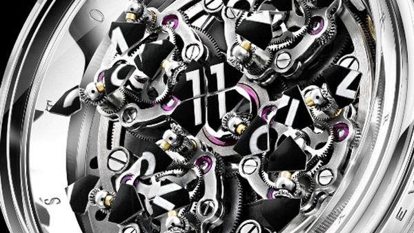 Zamiast tradycyjnej tarczy, praktycznie całą powierzchnię zegarka zajmuje skomplikowany mechanizm, który pokazuje godzinę. Liczba wyświetlana jest w centrum mechanizmu - całą resztę zajmują jego elementy. Minuty odczytuje się na bocznej, mniejszej tarczy. Najciekawszy jest jednak moment zmiany godziny, kiedy mechanizm na krótką chwilę zmienia się całkowicie, płynnie przestawiając poszczególne elementy i układając cyfry nowej godziny.