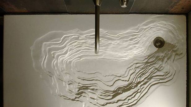 Choć betonowa umywalka nie wydaje się szczytem finezji, przy odrobinie pomysłowości można z topornej, betonowej płyty zrobić coś niezwykłego. Piękny element wyposażenia to dzieło zespołu Gore Design. Umywalka została wykonana z użyciem ekologicznych materiałów, a wykorzystane barwniki nie zawierają metali ciężkich.
