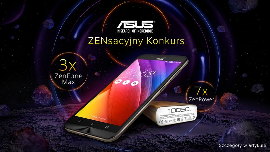 Poza smartfonami na zwycięzców konkursu czekają również banki energii ZenPower, łączące niewielkie wymiary i wagę z imponującą pojemnością. ZenPower ma wielkość karty kredytowej i grubość tylko 22 milimetry, oferując przy tym aż 10050 mAh - taki zapas energii pozwoli nie tylko wielokrotnie uzupełnić akumulator niejednego smartfona, ale także naładować tablet.