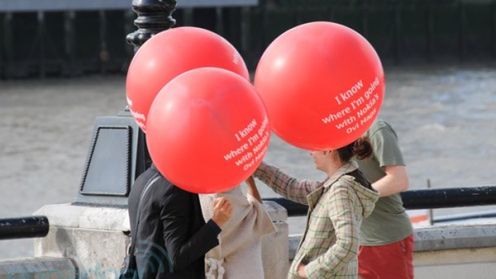 Otóż jak donosi Janek, nasz korespondent z Londynu, przed wejściem na konferencję HTC ustawiły się hostessy Nokii trzymające balony z reklamą Ovi Maps i napisem:
