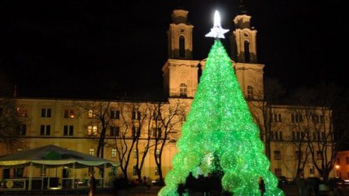 Mierząca 13 metrów choinka została skonstruowana z 32 000 plastikowych butelek. Na tak nietypowy pomysł wpadła litewska artystka - Jolanta Smidtiene.