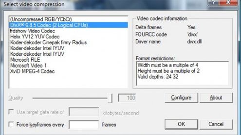 Oprócz możliwości kopiowania materiału możemy za pomocą VirtulDub skompresować do formatu divx lub xvid pliki, które mamy już na dysku.