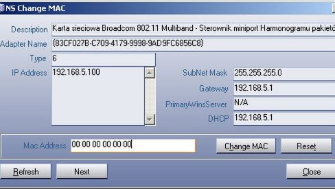 Metod zmiany adresu MAC naszej karty jest kilka.