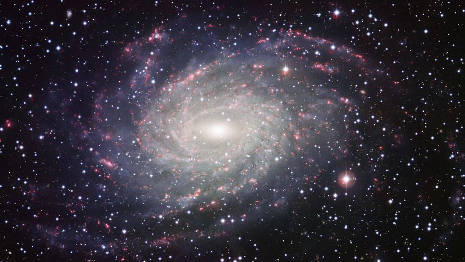 Galaktyka ta nosi nazwę NGC 6744, a położona jest aż 30 milionów lat świetlnych od nas. Może nie "aż", bo znamy obiekty odległe nawet o 13 miliardów lat świetlnych, ale i tak takiej przestrzeni człowiek nie jest w stanie sobie wyobrazić. W centrum zdjęcia znajduje się jądro galaktyki, od którego odchodzą spiralne ramiona. Ich kształt wskazuje, w którą stronę obraca się cały układ. Co jednak różni NGC 6744 od naszej galaktyki, to fakt, że jest ona dwukrotnie większa od Drogi Mlecznej.