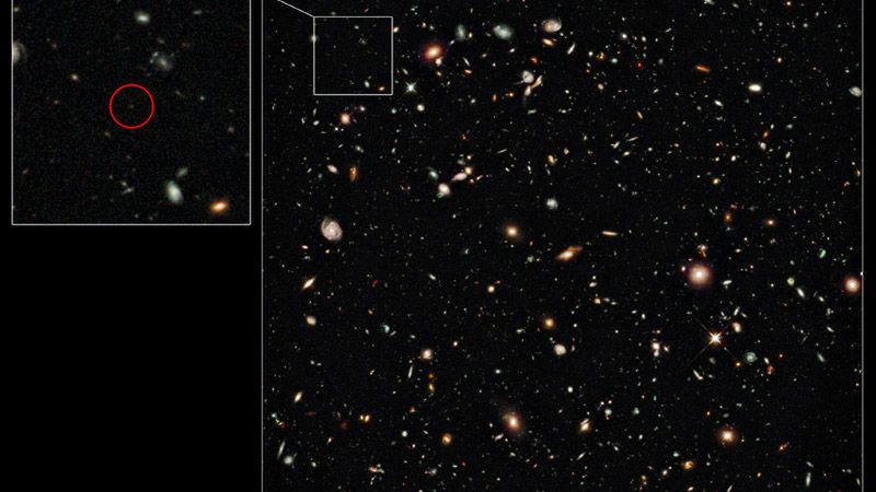 Są to pierwsze potwierdzone obserwacje galaktyki, której światło przedarło się przez wczesne, "ciemne wieki" Wszechświata. Ogłoszono je dziś na łamach czasopisma "Nature". Same obserwacje trwały już od 2009 roku. Kosmiczny Teleskop Hubble'a zaobserwował kilka słabych obiektów mogących być galaktykami z początków Wszechświata. Następnie zespół astronomów użył Bardzo Dużego Teleskopu VLT do obserwacji galaktyki o mało ciekawej nazwie UDFy-38135539. Wyróżniało ją od innych to, że była najbardziej czerwona z całej grupy.
