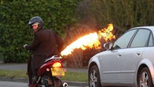 Na szczęście skuter z zainstalowanym miotaczem ognia nie został dopuszczony do ruchu. A może powinien...